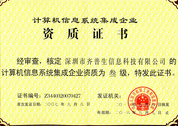 • 計算機信息系統集成企業資質證書(三級)
